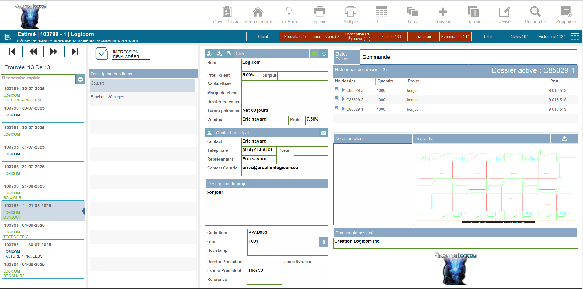 LogiEstime, c’est bien plus qu’un logiciel d’estimation : c’est un système complet de gestion de production pour imprimeurs. Développé et optimisé depuis plus de 20 ans, il évolue constamment grâce à une collaboration étroite avec le milieu de l’imprimerie.